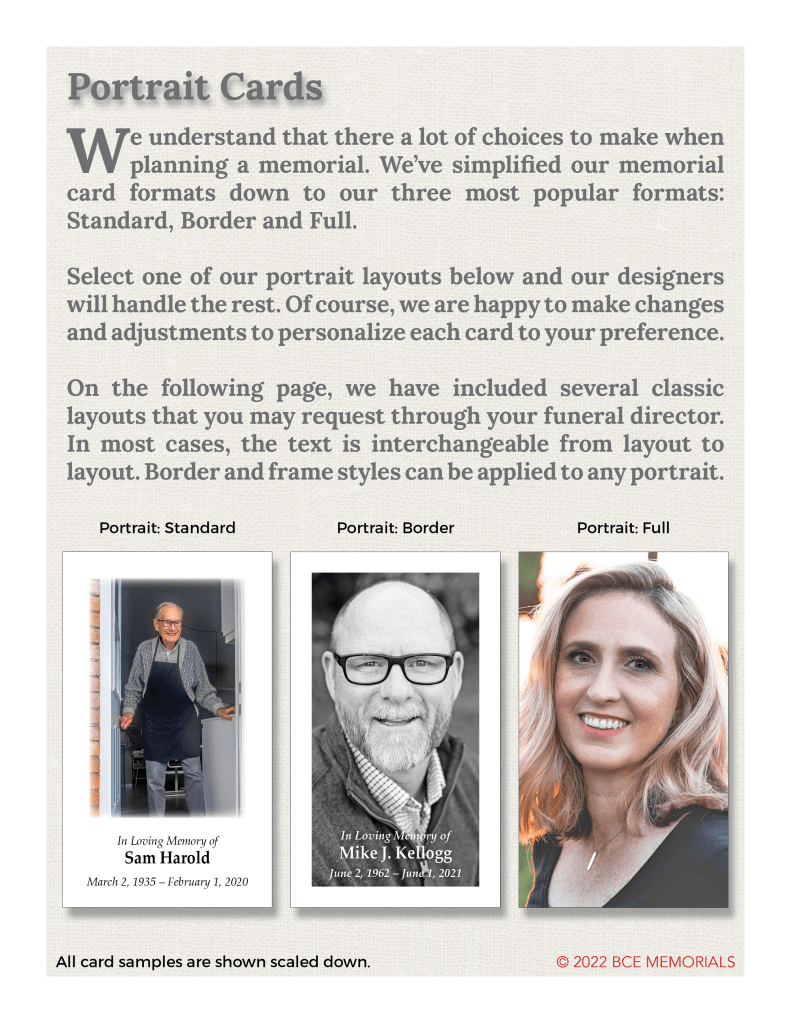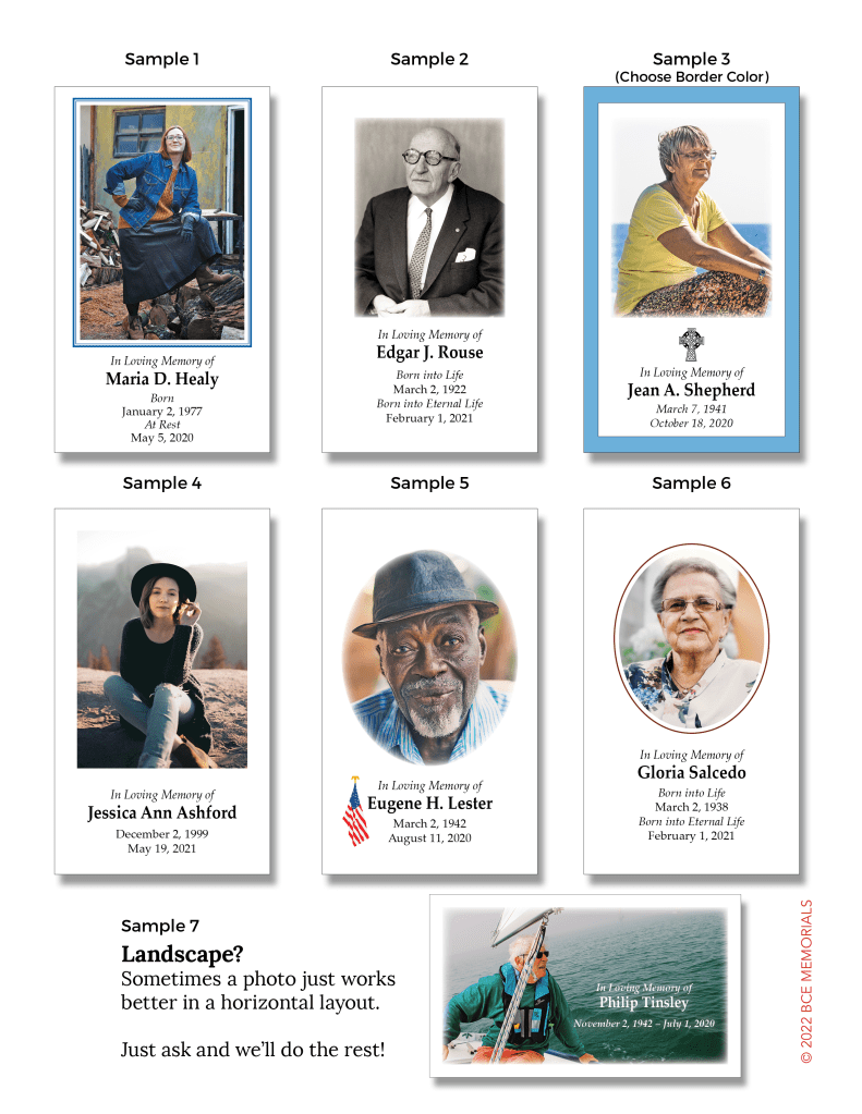 Welcome to BCE Memorials. For more details on our Memorial Portrait, Tranquility and Religious Cards, please click on the menu above.