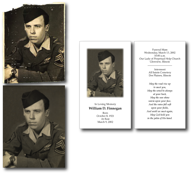 Whether the photo is for a Memorial Card, Program or, simply, a memorable keepsake, we pride ourselves on offering high-quality retouching and restoration of photographs for your loved ones.